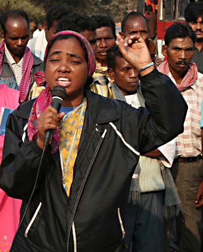 Bahan Bulu, an experienced Adivasi activist, gives a speech.
