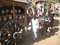 A parade of bullock carts travells from village to village, to celebrate the richness of the traditional seeds.